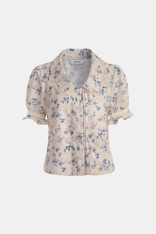 Alyna – Lace Spliced Pleated Floral Shirt in White -