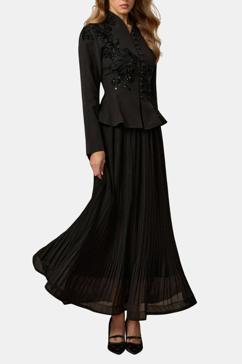 Evania – Chelsea Collar Buttoned Lace Trim Blouse in Black -